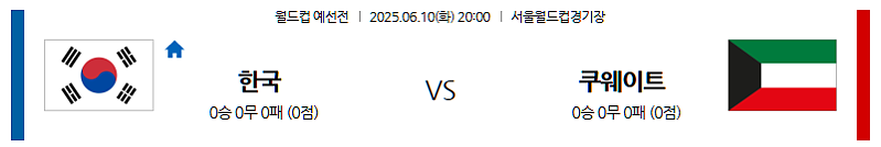 ▶ 2025년 6월 10일 20:00 (한국 시각) | 서울 월드컵 경기장 (Seoul World Cup Stadium) | 2026 FIFA 월드컵 아시아 2차 예선 | 대한민국 vs 쿠웨이트