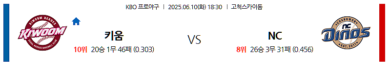 ▶ 2025년 6월 10일 18:30 (한국 시각) | 창원 NC 파크 (Changwon NC Park) | KBO 리그 | 키움 히어로즈 vs NC 다이노스
