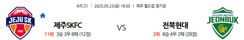 2025년 5월 23일 오후 7시 30분 (한국 시간) | K리그1 정규리그 | 제주 유나이티드 vs 전북 현대