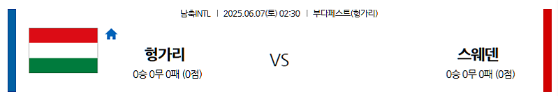▶ 2025년 6월 7일 02:30 (한국 시각) | 푸스카스 아레나 (헝가리 부다페스트) | 남자 축구 국가대표팀 친선 경기 | 헝가리 vs 스웨덴