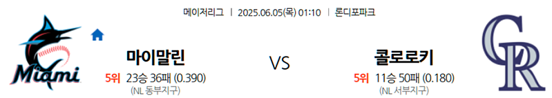 ▶ 2025년 6월 5일 01:10 (한국 시간) | 론디포 파크 (LoanDepot Park), 마이애미 | MLB 정규시즌