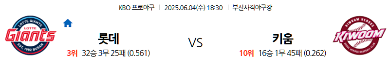 ▶ 2025년 6월 4일 18:30 (한국 시간) | 사직 야구장 (Sajik Baseball Stadium), 부산 | KBO 리그