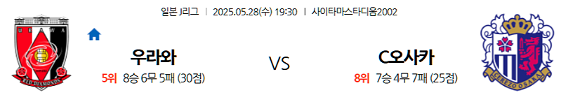2025년 5월 28일 오후 7시 30분 (한국 시간) | 사이타마 스타디움 2002 (Saitama Stadium 2002) | J1 리그 | 우라와 레즈 vs 세레소 오사카