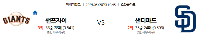 ▶ 2025년 6월 5일 10:45 (한국 시간) | 오라클 파크 (Oracle Park), 샌프란시스코 | MLB 정규시즌
