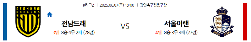 ▶ 2025년 6월 7일 19:00 (한국 시각) | 광양 전용 축구 경기장 | K리그2 | 전남 드래곤즈 vs 서울 이랜드 FC