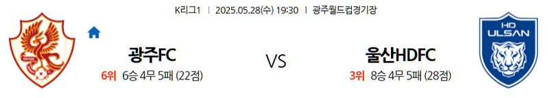 2025년 5월 28일 오후 7시 30분 (한국 시간) | 광주축구전용경기장 (Gwangju Football Stadium) | K리그1 | 광주 FC vs 울산 HD