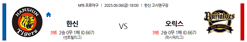 ▶ 2025년 6월 6일 18:00 | 고시엔 구장 | NPB (일본 프로야구) | 한신 타이거즈 vs 오릭스 버팔로스