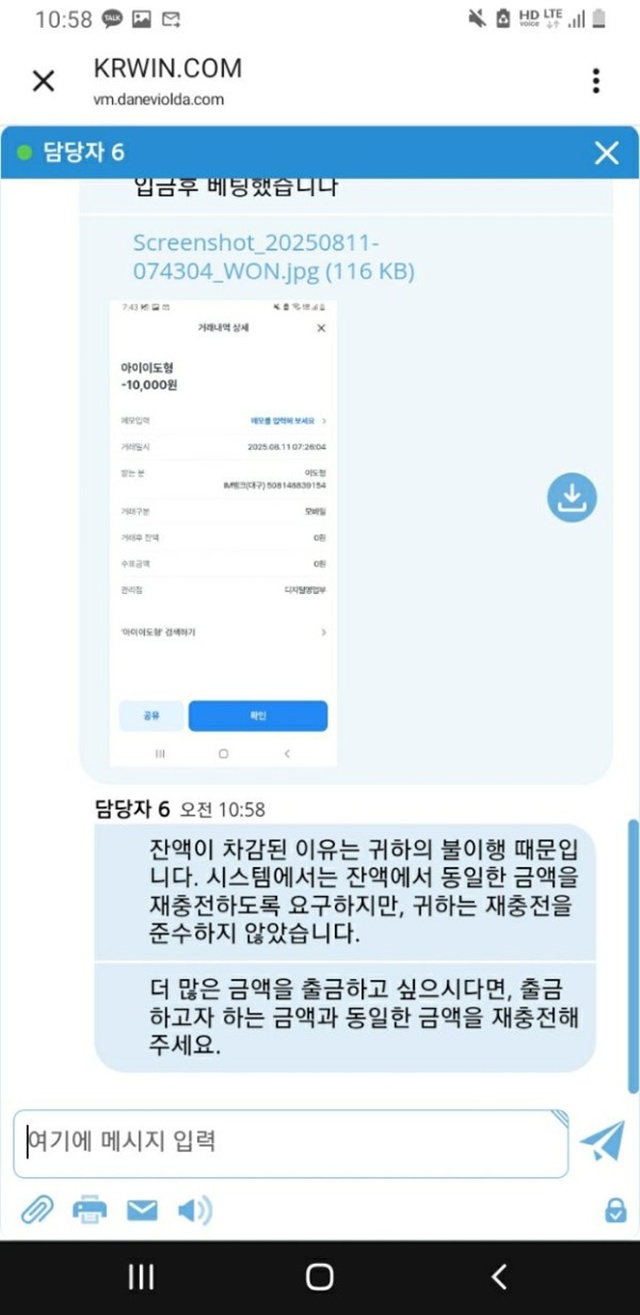 2025년 8월 12일, **krwin(12krwin.com)**에서 251만원 규모의 먹튀 사건이 발생했습니다. 피해자는 가입 보너스를 잃은 후 추가 충전하여 당첨금을 만들었으나, 사이트가 환전 기능을 차단하고 계정을 잠가 당첨금을 몰수했습니다.